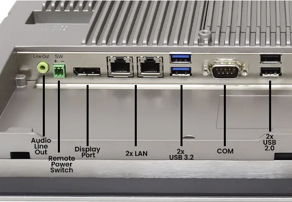 The 10” Stainless Panel PC strikes a balance between portability and functionality, catering to diverse industrial needs. Equipped with Windows 11 compatibility and Celeron J6412 CPU, it guarantees smooth operation. Its IP66/IP69K compliant stainless steel front bezel safeguards against water and harsh chemicals, making it suitable for food & beverage and pharmaceutical industrials. The aluminum back enclosure ensures a lightweight design and convenient access to inputs and outputs. With an optional smart battery, it becomes a reliable and efficient computer solution for your industrial environment.