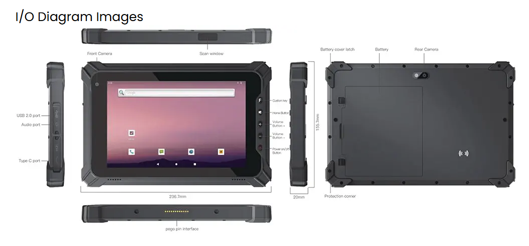 | Mounting Options | Desktop Stand, Forklift Mount, Vehicle Mount |