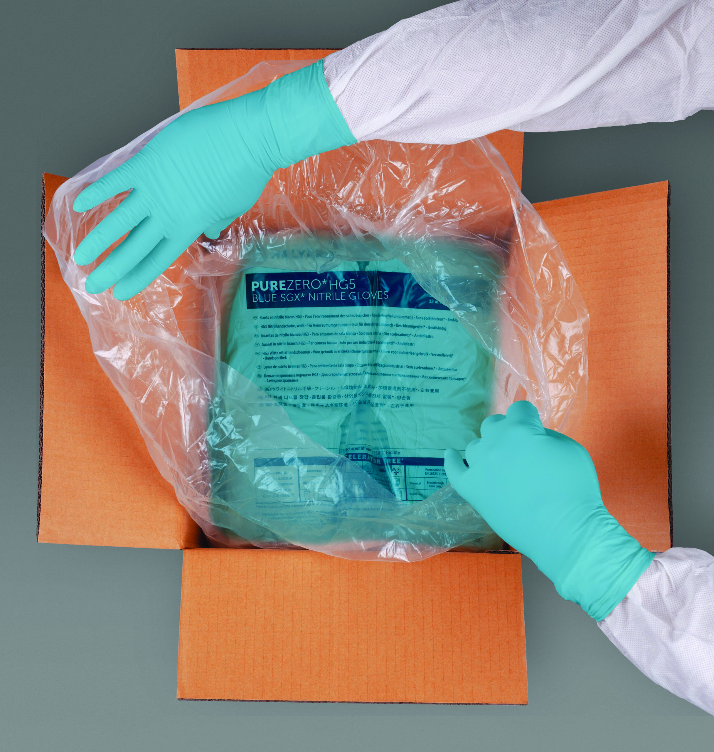 HALYARD* PUREZERO* HG5 Blue SGX* Nitrile Cleanroom Gloves with SMOOTH GRIP TECHNOLOGY* (SGX*) are 12” long and designed for semiconductor, pharmaceutical and medical device manufacturing applications. These gloves are clean processed (washed repeatedly in deionized water) to ensure consistent control of low particles and extractables and can be double donned. They are recommended for use in ISO Class 5 or higher and Grade B/C/D cleanrooms. Because HALYARD* PUREZERO* HG5 Blue SGX* Cleanroom Gloves have an accelerator-free1 formulation, there is a reduced risk of allergies and skin irritation associated with accelerator chemicals in other nitrile gloves.